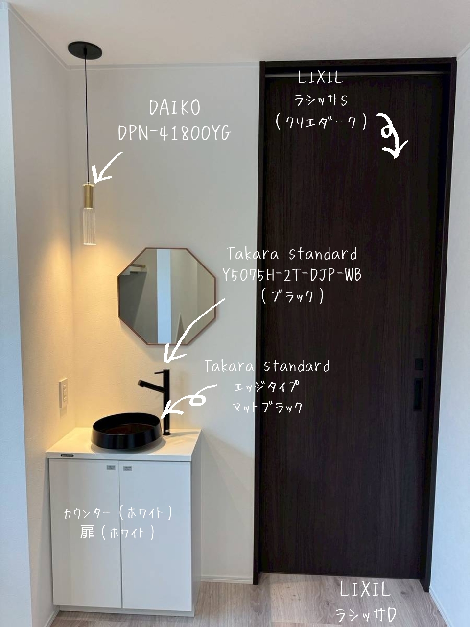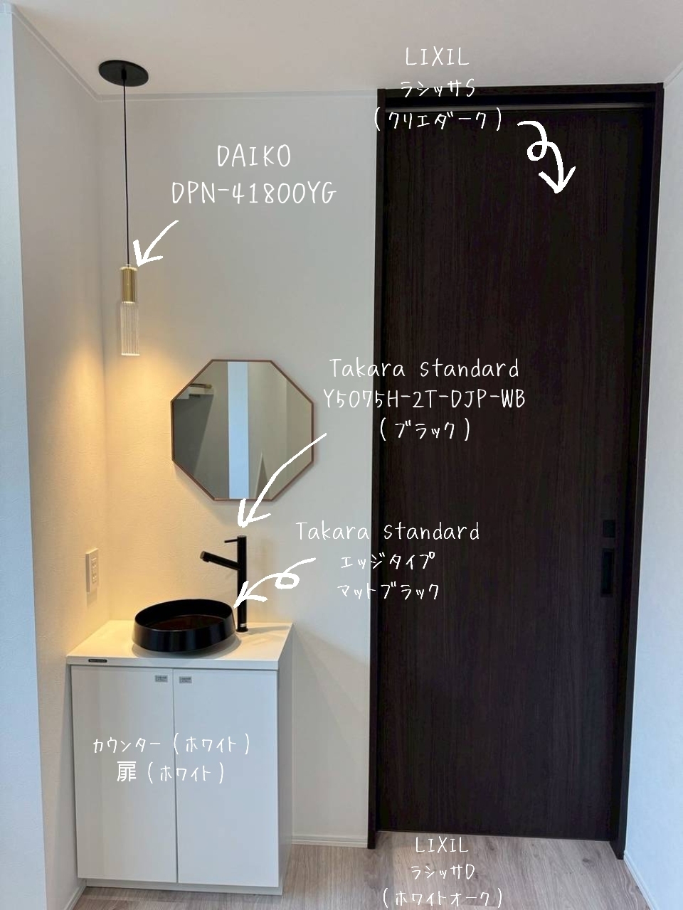 玄関洗面台周りで採用したアイテムも載せています